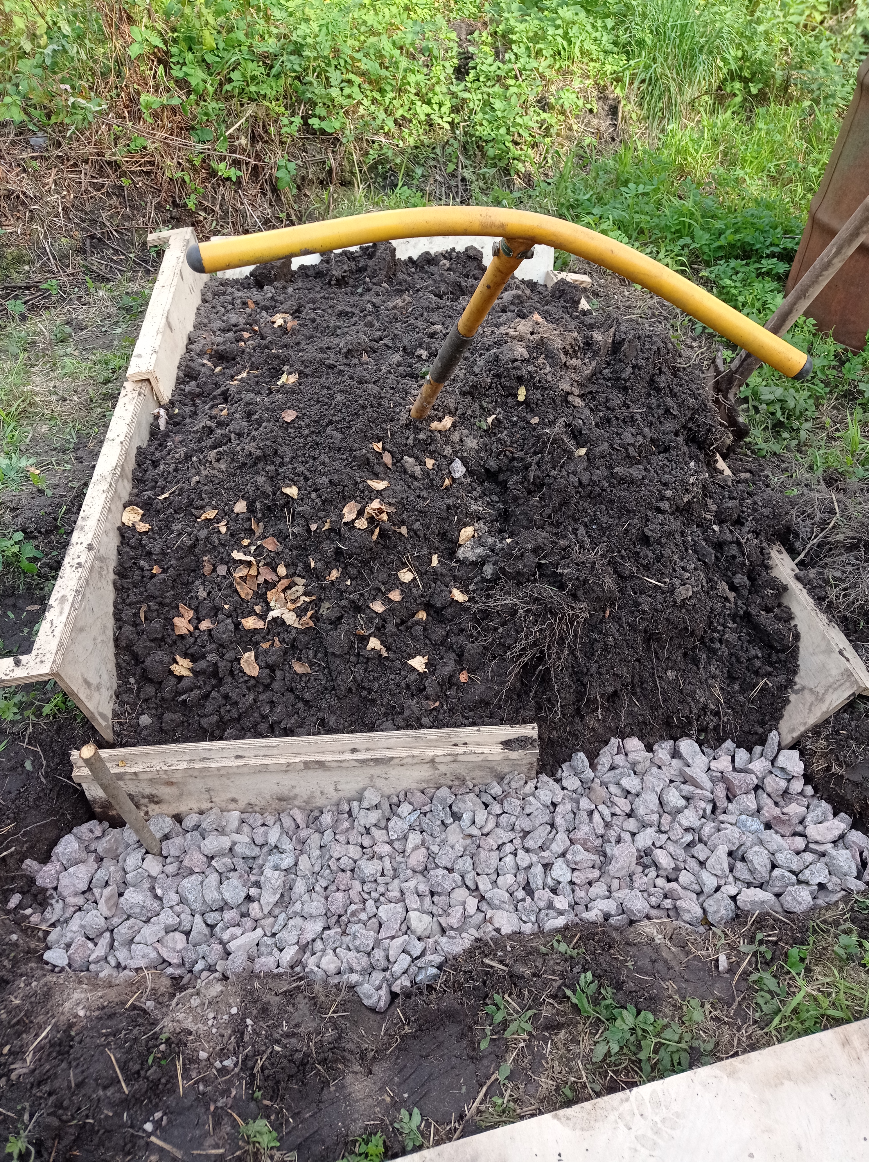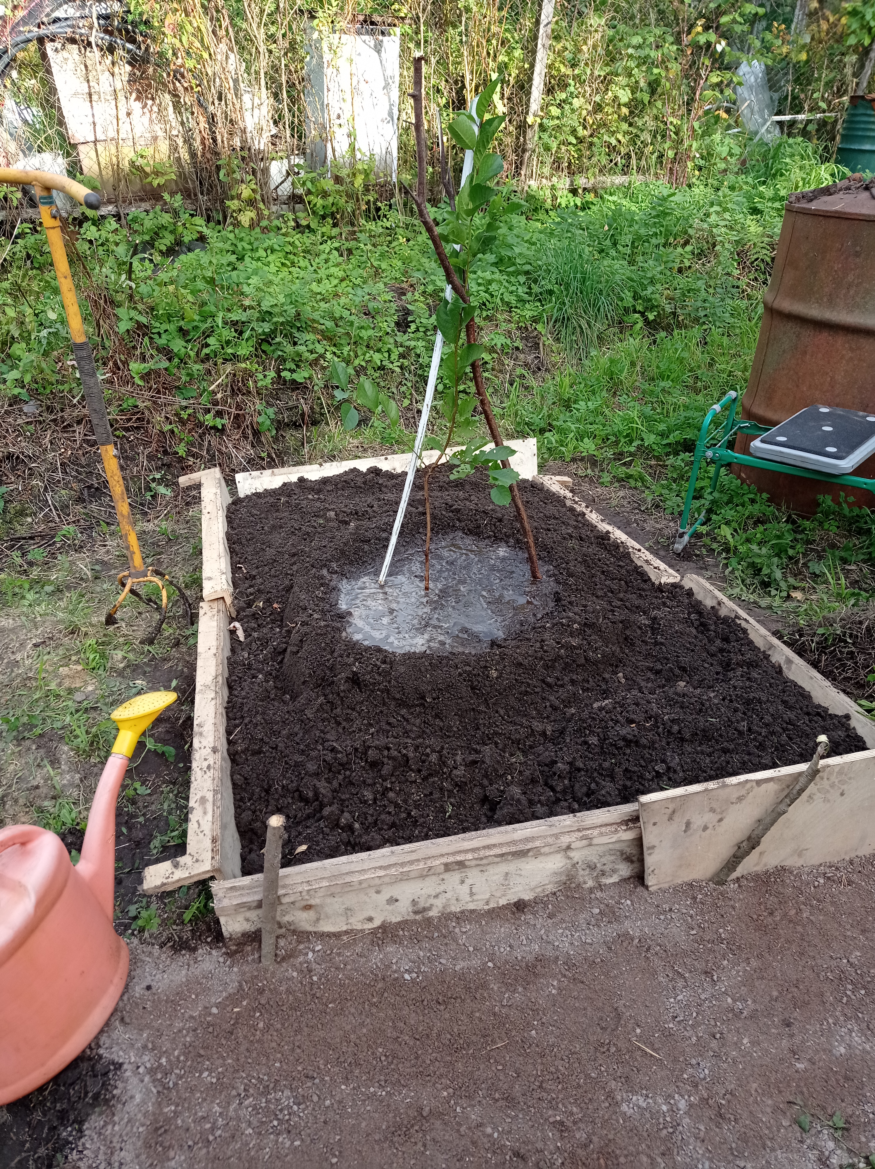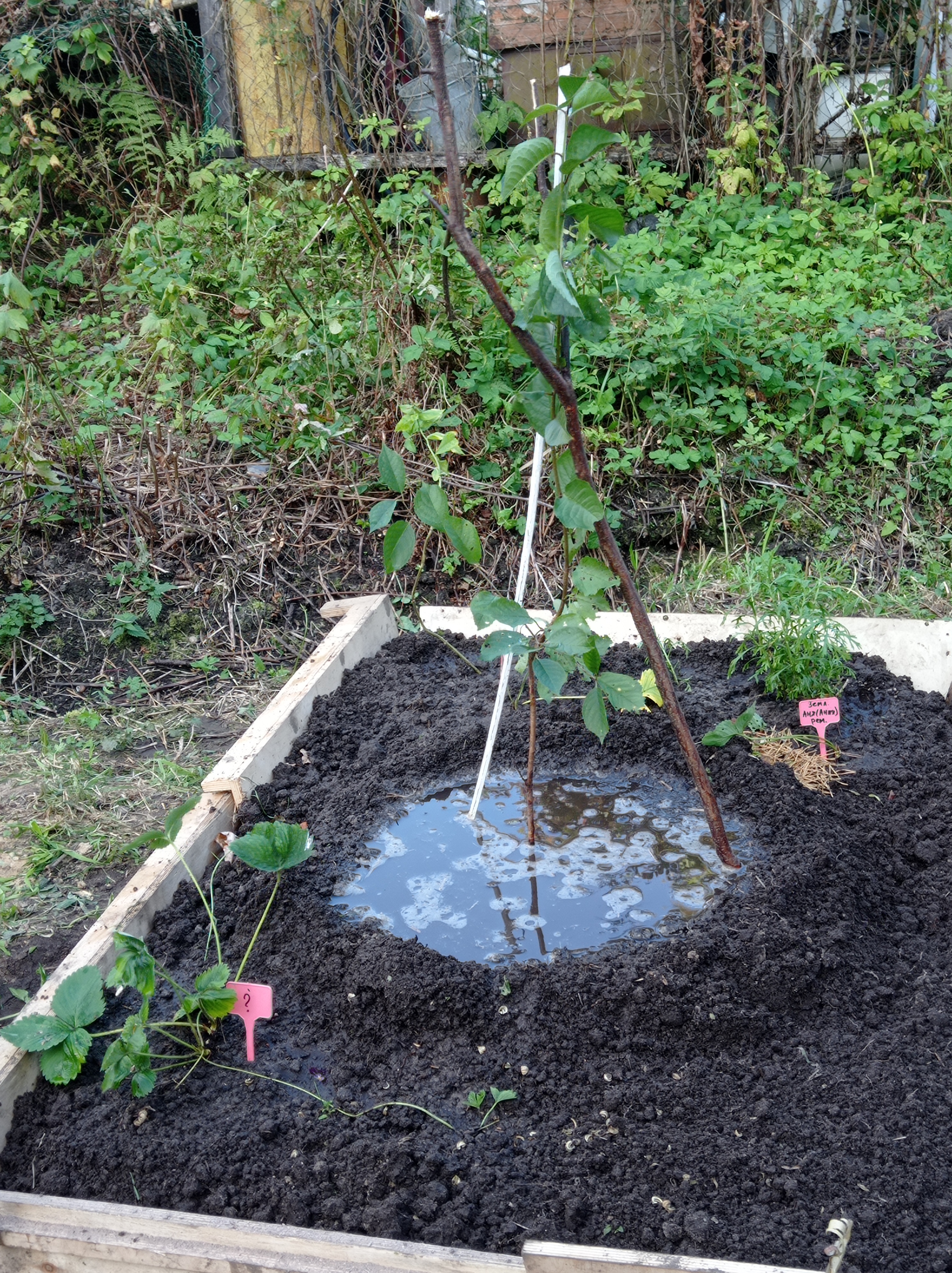 Копала грядку на целине, формировала дорожку, пересадила туда маленькую вишенку.