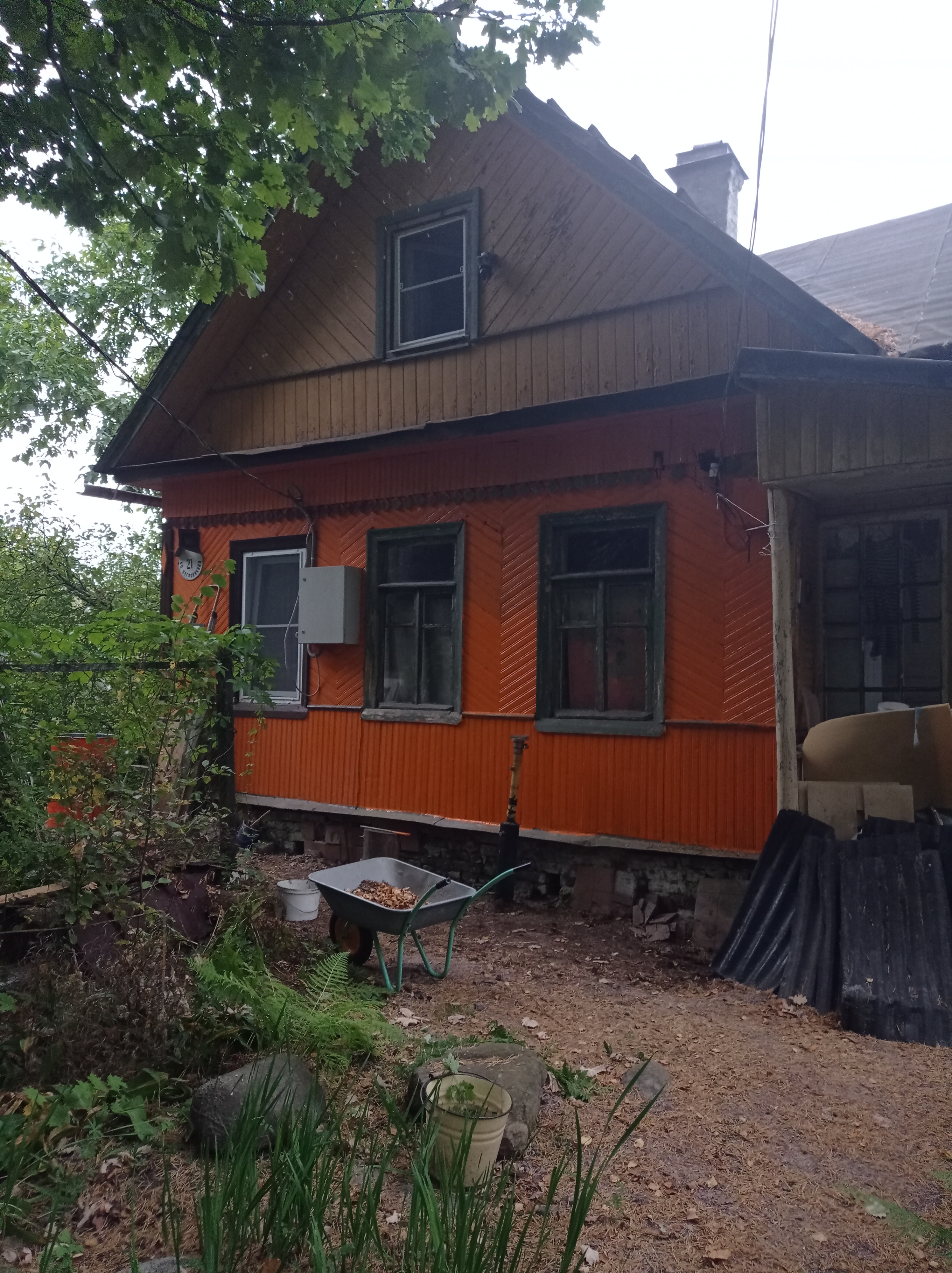 Потом помогала мужу обдирать фасад и докрашивать вторую половину)))